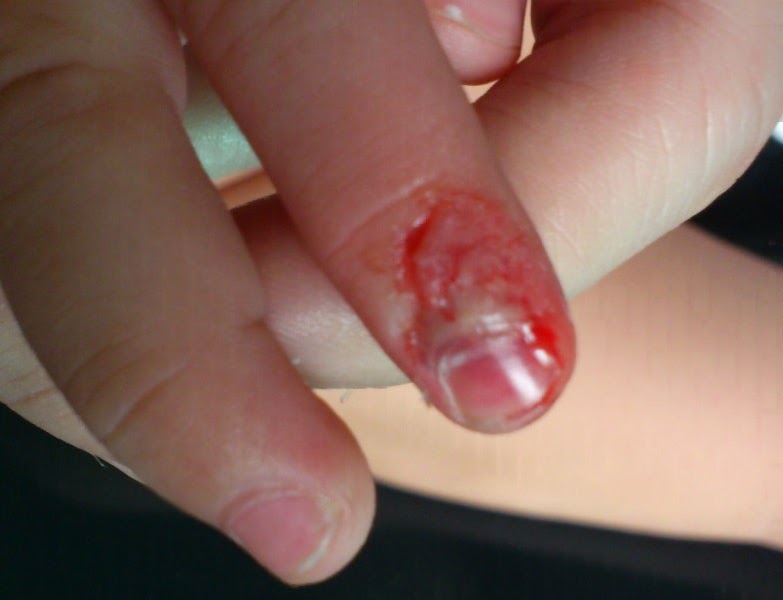 He had his finger on the hinge of the door when I was closing the door. It was so painful that he cried for 45 minutes.